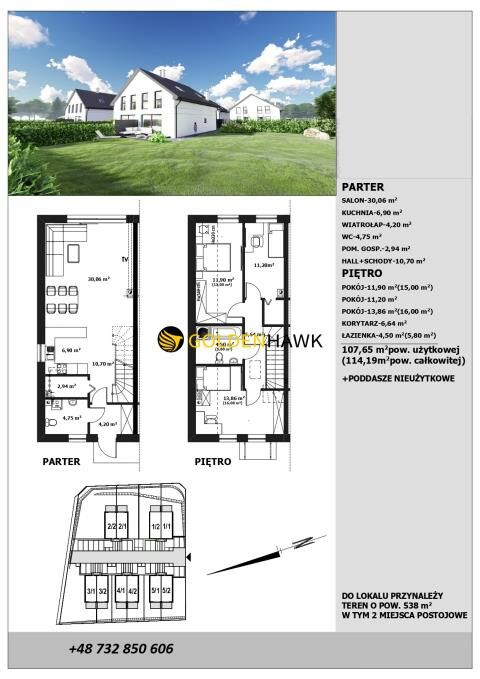 Powierzchnia użytkowa: 107,65 m (wliczając realną powierzchnię poddasza)